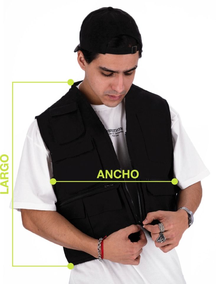 CHALECO SASTRERO, confeccionado con entretela para conservar la forma dando un mejor aspecto visual, cuenta con 9 compartimentos diferentes, 6 bolsillos con tapa, un bolsillo simple, dos bolsillos delanteros amplios con cierre y un bolsillo con tapa amplio en la espalda. Detalles en serigrafía en frente y espalda full estampa.